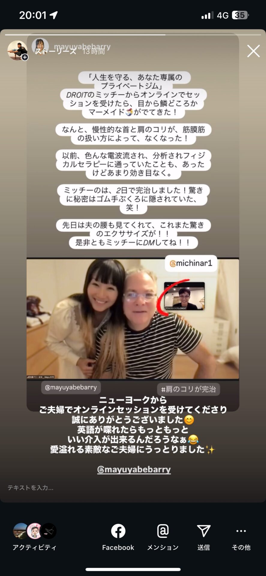 先日、ニューヨーク在住のご夫婦が、オンラインで私ミッチー(DROITトレーナー池田)の「痛み改善セッション」を受けてくださいました。